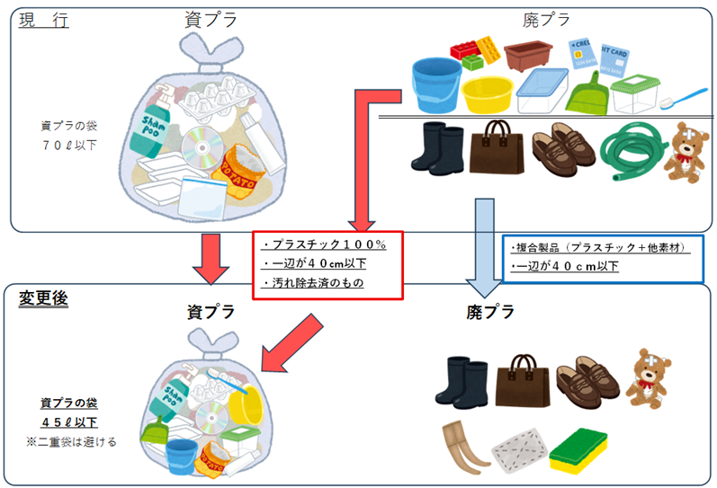 資源プラスチックの袋は上限70リットル → 上限45リットル(透明・半透明)へ
