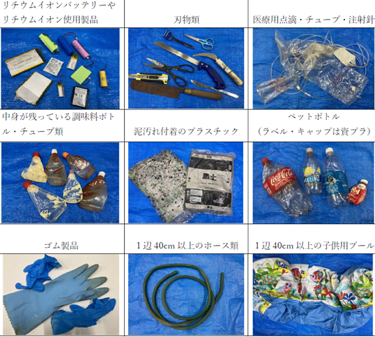 新しい資源プラスチックの3つの条件に該当しないものは入れないでください。